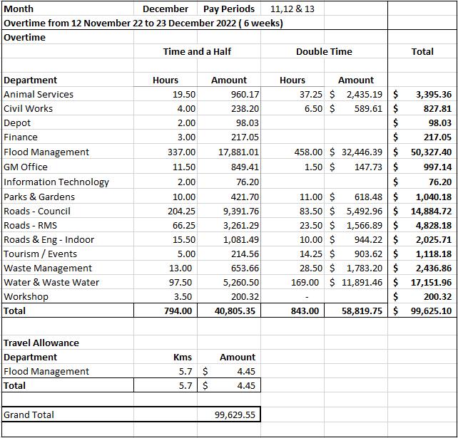 Councillor Rodda advised that he had a pecuniary interest in Item 12.4 as she is a Contractor for Council.