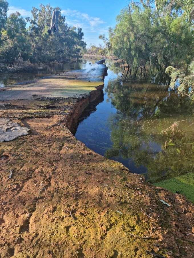 • House boat bilge pump reinstallation being delayed due to Darling River flood waters.