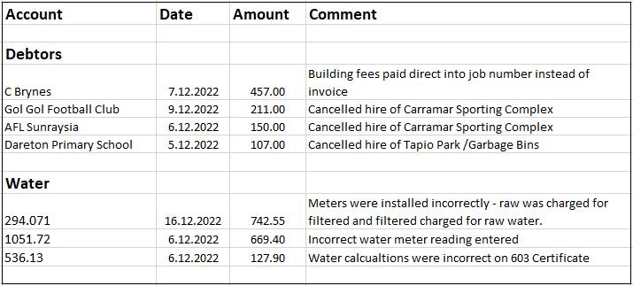 That Council receives and notes the list of outstanding matters as at 6 December 2022. Moved Cr Rodda, Seconded Cr Cooper