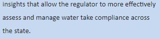 • DPE-Water has not assessed how much water is extracted from these sources each year, nor compared this actual usage to the extraction limits to assess compliance with the plans.
