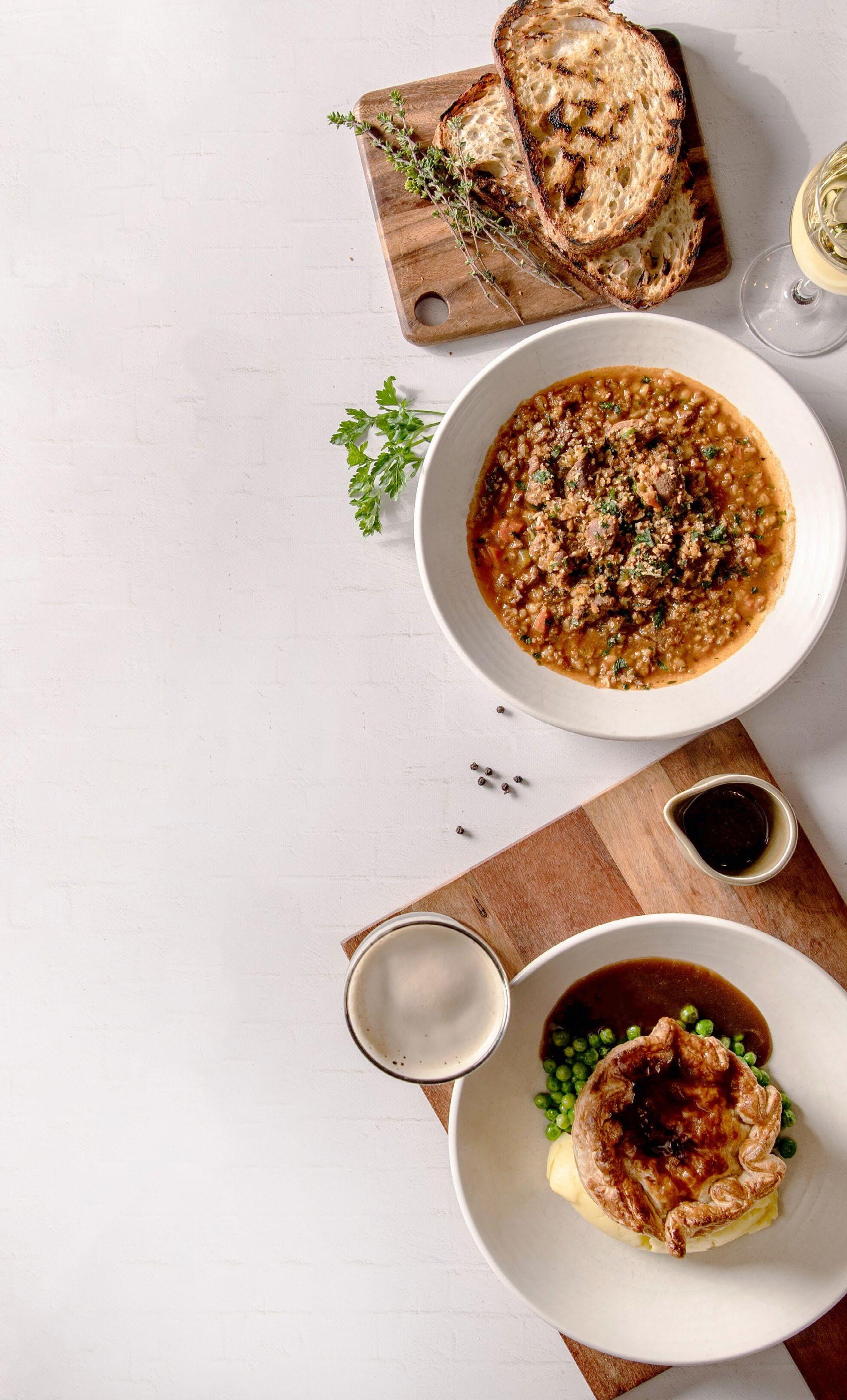 Slow Cooked Braised Lamb & Barley Soup Served with Grilled Sourdough