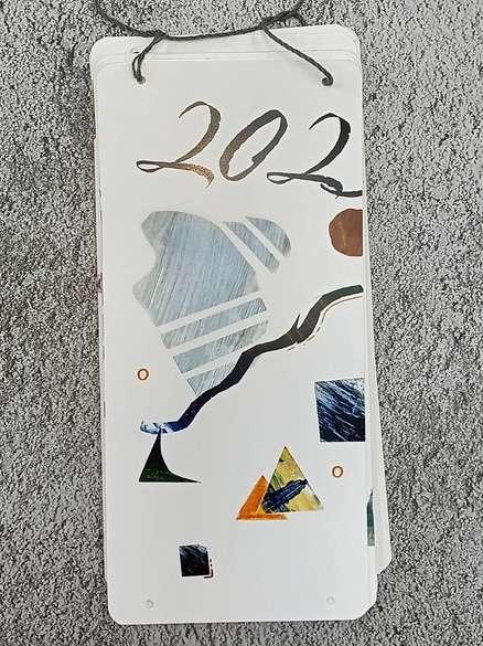 以秋天為題,利⽤⾃創天然筆刷及⼈⼯畫筆進⾏ 質感⾊紙創作。另外拼貼成明信⽚,最後轉成電 ⼦檔並列印、再製年曆。