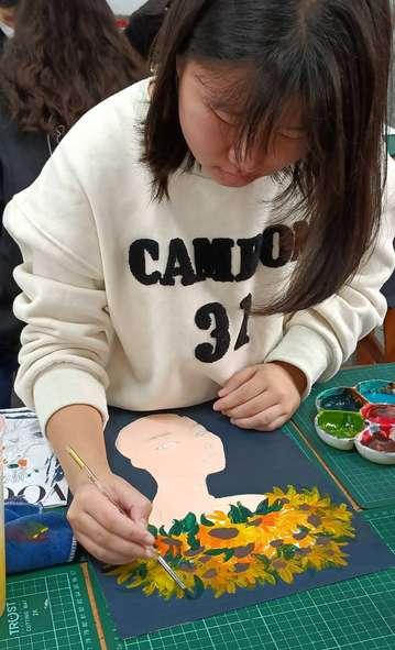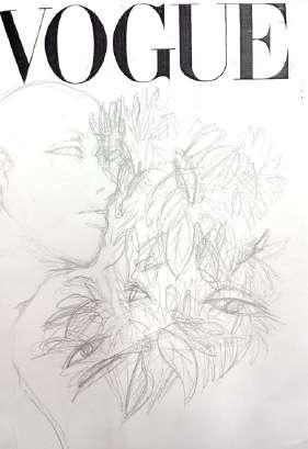 以VOGUE雜誌封⾯為題,將課程劃下句點。 運⽤之前學過的技法,並利⽤質感⾊紙、各種 材料重新詮釋⾃⼰的⾃畫像。