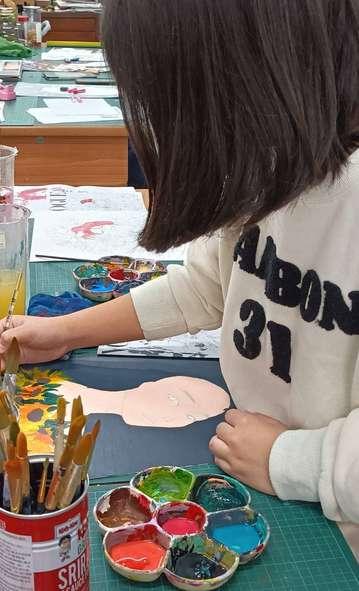 顏繪驗 1 ⾊練 2 對⾊&⾊練 4 ⼈物寫 & ⾊練 3 練 5 課容 6 格畫 & 視覺質拼貼練 7 整體創作和同學互相描繪對⽅, 以⾃⼰的⾵格進⾏創作。