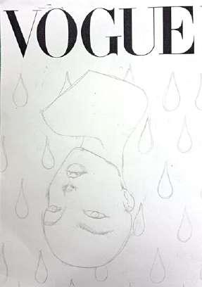 01 兩⾴的稿紙中我定⼀ ⾯⼈物為主⽽另⼀⾯ 物品為主 在⼈物為主題的稿中 顛倒寫實的⼈作為畫⾯焦 點景則利⽤鮮明的滴做 出 另⼀⾯為主⾓畫⾯左 側的男⼈托了的豔 ⽽在中的⼀隻隻眼 就視眾 02 由於對⾊更把主⾓ 從景中跳出來我 使⽤⾊站擇暖 對並採⽤向⽇的 ⾊天的 ⾊ 03 完稿騰上正式的作品 再做改使畫⾯更 和 照的顏⾊於 稿試⾊再上⾊我 主使⽤克⼒⾊作 畫⽽為輔助⾄於 景的滴則是貼之製作 的質⾊紙現不⼀樣的 圍 04 製作流程 05 加上的是另 貼的VOGUE字樣使⽤ 厚⼀點的紙更製 ⽴把真正的封⾯ 主題凸顯出來 ⾊景利⽤⽩⾊ 克⼒顏製的質 使畫⾯更豐富 設計草稿