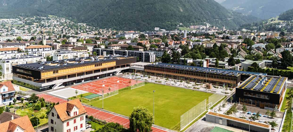 sowie ausserschulische Bedürfnisse ab. Mit 1’653 Tribünensitzplätzen und einer modernen TV-Plattform wird die Anlage zum Austragungsort für Meisterschaften und Turniere auf lokaler, nationaler und internationaler Ebene und stärkt Chur nachhaltig als Sportstadt.