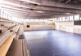 vorzuheben ist die Schaukelringanlage mit Gurten und einer speziellen Steuerung, welche es ermöglicht, zunächst die ganze Konstruktion abzusenken und anschliessend jedes Schaukelringpaar einzeln einzustellen. Ein weiteres Highlight ist die dreiseitige Tribüne, welche aus sechs Blöcken besteht und dank der Steuerung auf zwei Ebenen in der Tiefe blockiert und flexibel an den Spielbetrieb angepasst werden kann.