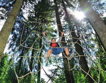 Kinderwald – Klettern, balancieren, wankende Tobelbrücken überwinden – oder lieber in Hängematten die Seele baumeln lassen und relaxen. Steine schleifen – Kunstwerke aus der Natur, Bachkiesel selbst polieren mittels Schleifscheiben an zwei Stationen.