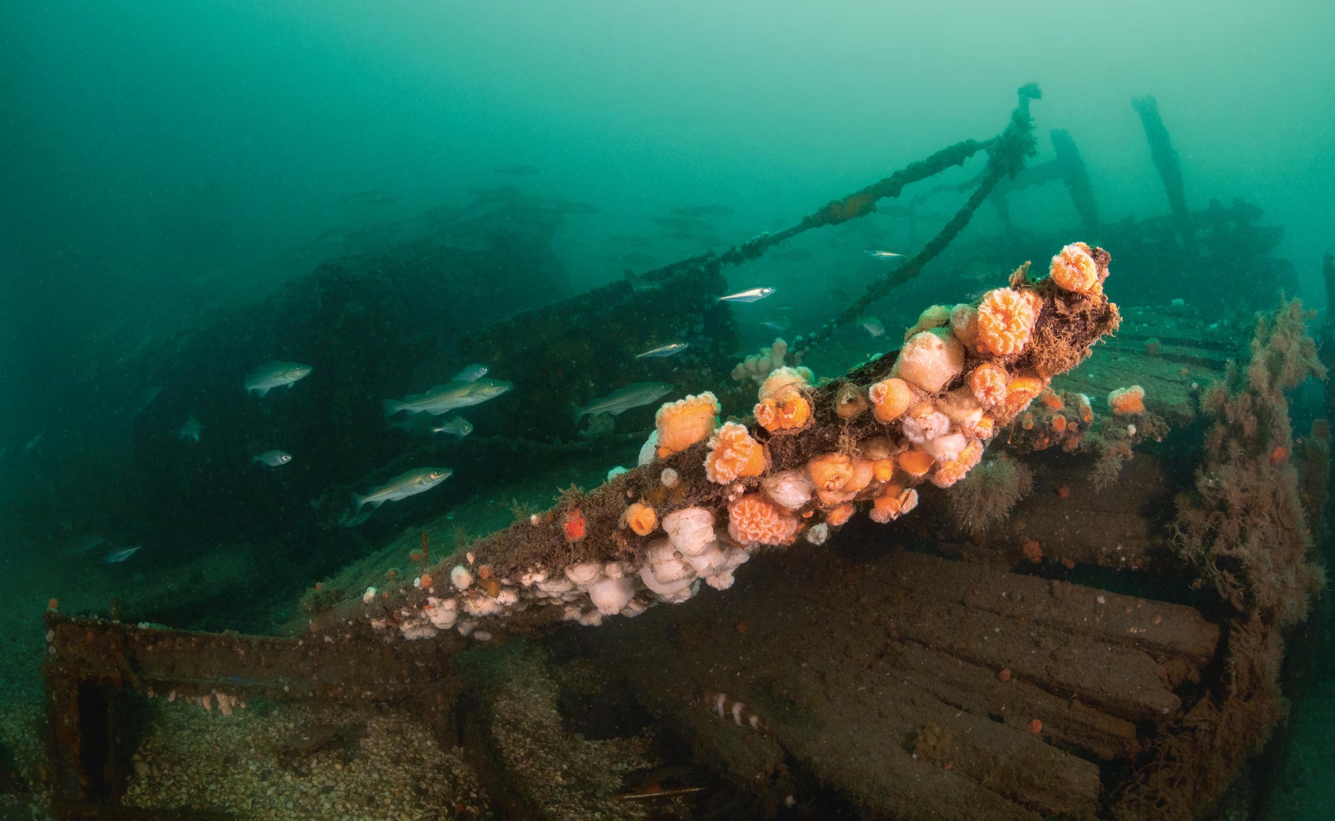 Onder het oppervlak van het ogenschijnlijk grijze water ligt een wereld aan schatten verborgen. Op de bodem van de Noordzee zijn stenenvelden en scheepswrakken vaak begroeid met prachtige, kleurrijke organismen zoals anemonen. Ook bieden ze onderdak aan vissen, krabben, kreeften, zeesterren en mosselen.