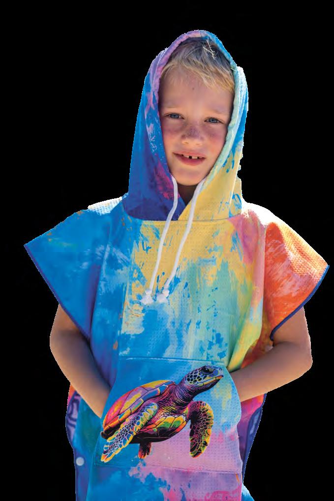 Dagje strand of zwembad? Je kind speelt lekker warm en droog in deze poncho van gerecycled plastic. Je kunt hem ook gebruiken als strandlaken of handdoek, want de stof droogt snel en er blijft weinig zand aan plakken. Handig toch?