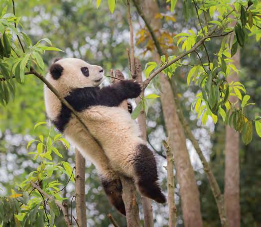 bepaalde weersomstandigheden, en die veranderen door klimaatverandering. Door de opwarming van de aarde verschuift de boomgrens en kan vee hoger de bergen in grazen. Daardoor verdwijnt de bamboe en dat is funest voor panda’s. WWF werkt daarom met de Chinese overheid aan verduurzaming. Met de toenemende gevolgen van klimaatverandering is dat hard nodig.’
