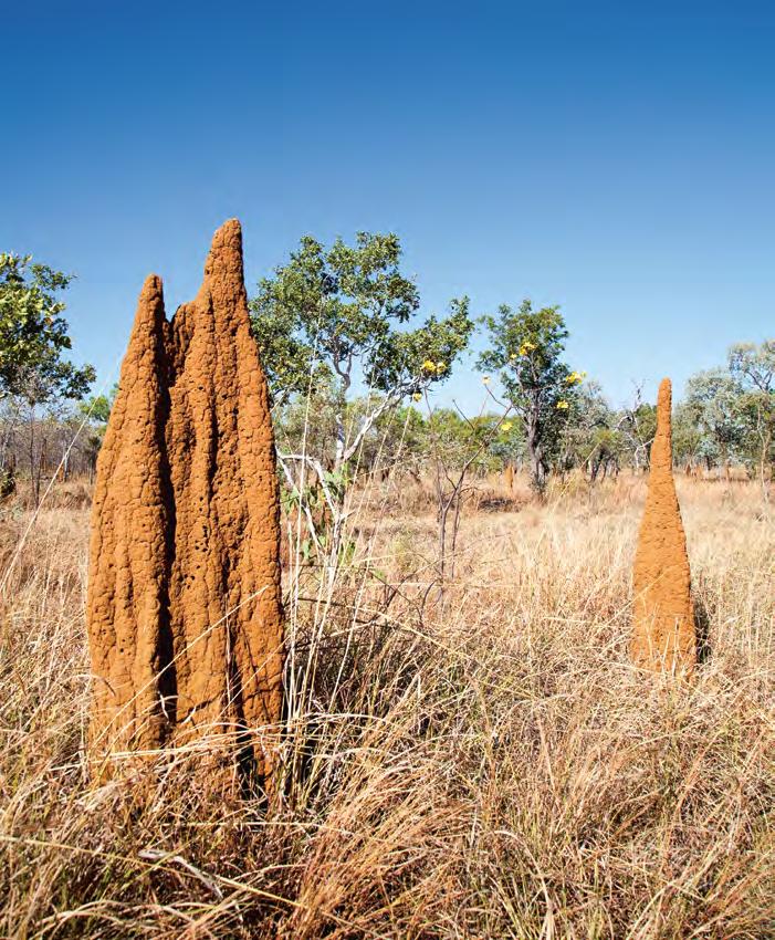 Net zoals elders op aarde, vormen dieren ook hier mede het landschap. De kleine kompastermiet is zo’n landschapsarchitect. De nesten van deze insecten zijn tot vier meter hoog. Het woord kompas in hun naam komt van de positie van hun platte, bladvormige bouwsels, waarvan de hoofdas perfect in een noord-zuidelijke richting ligt.