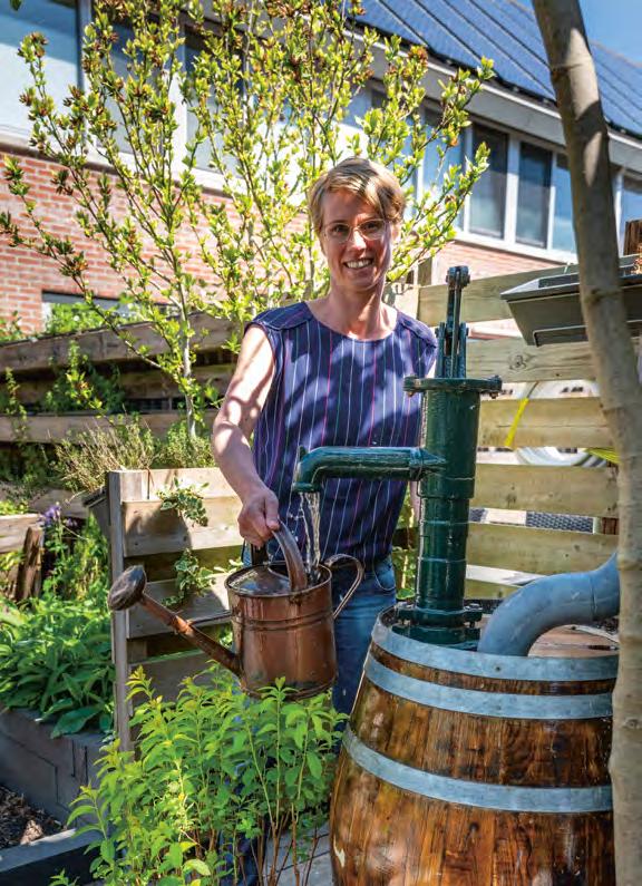 ‘Onze wijk bestaat uit 36 huizen. Die zijn ontwikkeld door de bewoners, dus zonder projectontwikkelaar. We deden alles zelf, inclusief het nadenken over duurzame woonoplossingen. Ik ben hierin gestapt omdat ik mijn ecologische voetafdruk wil beperken. Dat houdt ook in: zuiniger met drinkwater omgaan. Bij de bouw hebben we dubbele waterleidingen en een apart regenwatersysteem voor toiletten en wasmachines laten aanleggen. We hadden toen nog niet de technieken om dat werkend te krijgen, maar wilden voorbereid zijn. Sinds vijf jaar gebruiken veertien huishoudens het systeem.’