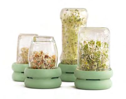 De lekkerste kiemgroenten kweek je gewoon in eigen keuken. De slimme siliconen deksels van Sprout Huggers Kiemset passen over standaard glazen potten en voorkomen troep of water rond de potjes. Zo blijft je aanrecht schoon en droog, en geef je je lege glazen potten