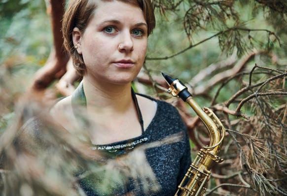 Das Modern-Jazz-Quartet um Kerstin Haberecht (Foto) mit Andrey Shabashev (p), Bastian Weinig (b) und Maximilian Hering (dr) widmet sich hauptsächlich den schnörkellosen Kompositionen der aufstrebenden Altsaxofonistin. Beeinflusst durch zahlreiche musikalische Vorbilder, übersetzt sie in ihren Stücken prägende Erlebnisse, außergewöhnliche Atmosphären oder kleine assoziative Details in ihre eigene musikalische Sprache. Dabei bereitet es ihr große Freude, sowohl die sanfte, sangliche als auch die energisch-perkussive Seite ihres Sounds zu präsentieren, und beweist hierbei ein ausgereiftes Gespür für abwechslungsreiche Energieverläufe und polyrhythmische Spannungen. Ebenso zeichnet sie ihr Talent für starke Melodien, klare Themen sowie ihre Flexibilität im Ton aus, der manchmal warm, voll und samtig, aber auch gerade oder spröde klingen kann. Unterstützt wird sie hierbei von einer Rhythmusgruppe, die mit ihren verschiedenen Charakteren maßgeblich den Gesamtklang von HABERECHT 4 beeinflusst.