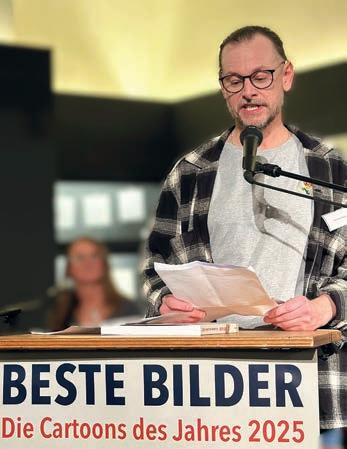 Cartoonisten und Redner: Hannes Richert, Klaus Stuttmann, Samy Challah, Holger Weyrauch, Nadia Menze, Jens Eike Krüger, Maxim Seehagen, Miriam Wurster, Markus Grolik, Ruth Hebler, Lappan Programmleiterin Antje Haubner, Uli Döring, Matthias Kiefel, Stefanie Bräuning-Ort, Bettina Schipping, Chrissie Salz, Caricatura-Leiterin Saskia Wagner, Zeichner und Laudator Norman Klaar, BURKH, Steffen Butz, Phil Hubbe, Mathias Hühn und Tom Fiedler (v.l.)