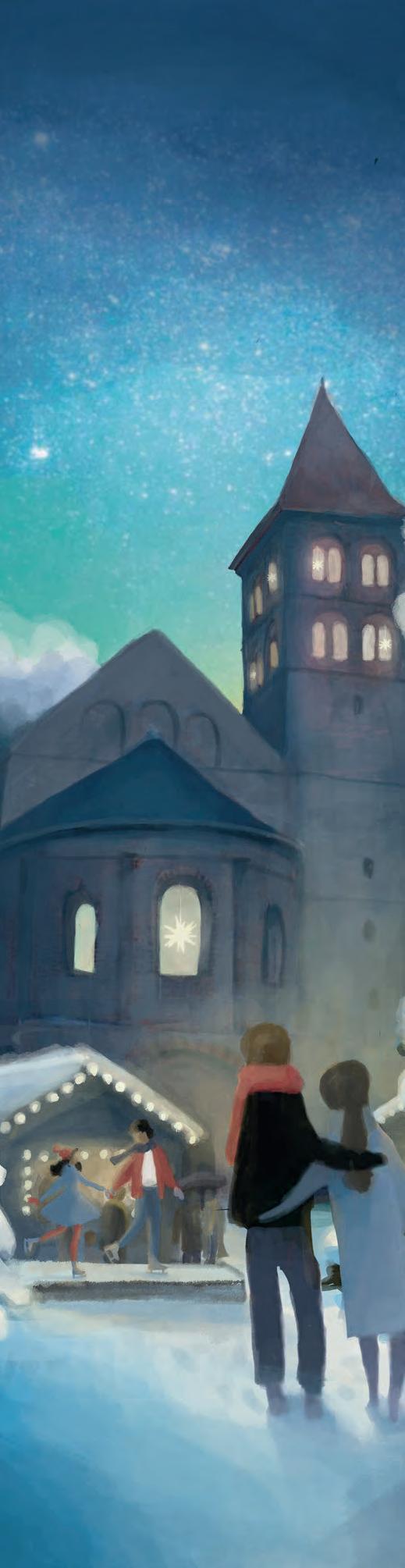 Bereits auf den ersten Blick begeistert das neue Papier mit einem farbenfrohen Stadtpanorama zur Weihnachtszeit – doch wer genauer hinsieht, entdeckt darin auch die Weihnachtsgeschichte: Maria und Josef finden im Bergpark Schutz, die Heiligen Drei Könige ziehen von der Karlsaue zur Krippe und der Nikolaus ist im Schillerviertel unterwegs. Gestaltet wurde das Papier vom Kasseler Illustrator Florian Biermeier, der bereits mehrere Graphic Novels veröffentlicht hat. Das Motiv vereint Stadtansicht und biblisches Geschehen auf kreative Weise. Erhältlich ist das Geschenkpapier für 2,50 Euro in der Tourist Information (Wilhelmsstraße 23) sowie im Kassel Service Point (1. Etage der GALERIA).