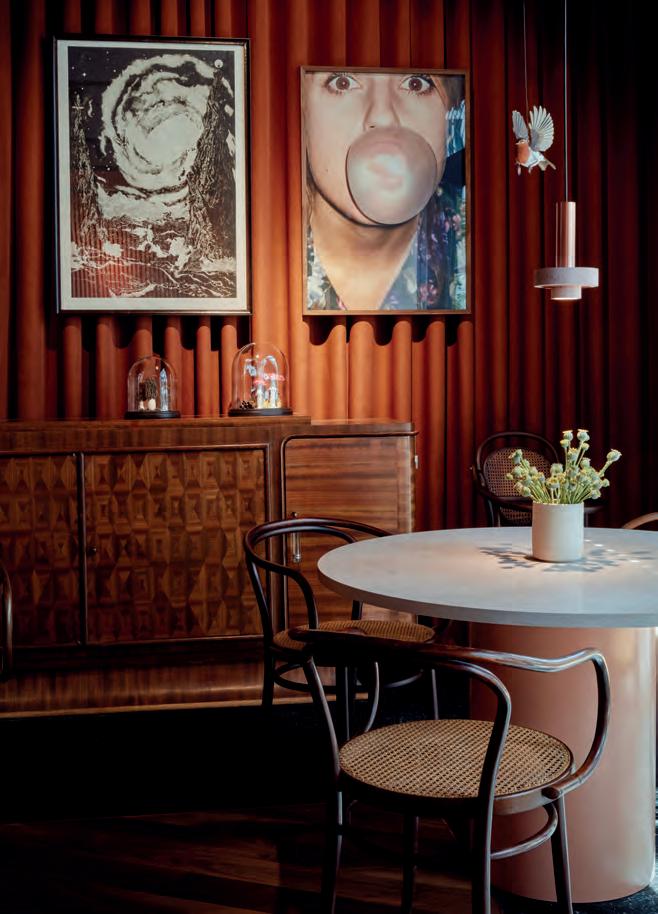 Die mehrfach ausgezeichnete Roomers Bar im gleichnamigen Hotel ist mit ihrem burlesken Charme Tre punkt für Genießer:innen und Szenegänger:innen. Lauschige Nischen, betörendes Licht und vollendete Drinks verheißen anregende Gespräche und inspirierende Momente mit Freund:innen und Kolleg:innen. Wer Hunger auf mehr als einen kleinen Snack hat, kann sich Leckerbissen von der 24-Stunden-Karte bringen lassen.