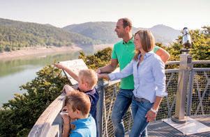 Pfaden über Stock und Stein ein. Immer wieder öffnet sich der Blick auf den See oder über die einzigartige Naturlandschaft. Etwas schneller geht es mit dem Fahrrad voran, egal ob mit oder ohne elektrische Unterstützung. Wasserratten genießen den Tag am See mit dem Boot und entdecken die Region so von der Wasserseite aus. Kulturinteressierte bummeln durch die malerische Altstadt von Bad Wildungen mit ihren gepflegten Fachwerkhäusern. Im Kontrast dazu steht die
