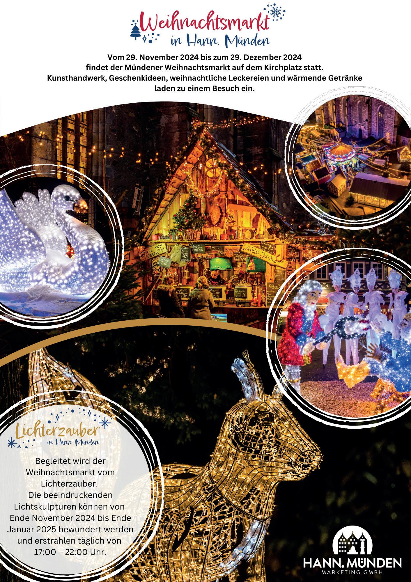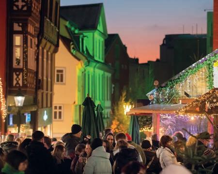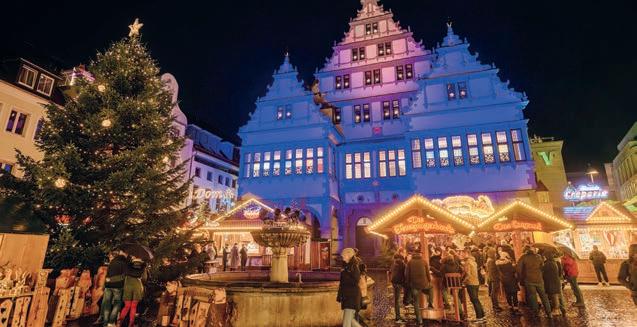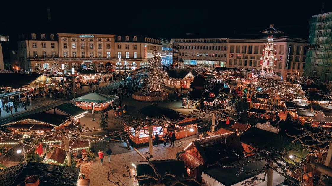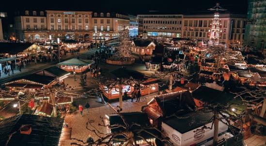 Neu: Der Fliegende Weihnachtsmann im Landeanflug – jeden Tag um 18 Uhr landet der Fliegende Weihnachtsmann auf dem Königsplatz! Auch ein ganz neues Highlight in diesem Jahr: Rund um den Obelisken in der Treppenstraße lädt das „Grimms Märchendorf“ mit liebevoll gestalteten Hütten und Lesungen zum Verweilen ein. Neben der weihnachtlich beleuchteten Märchenpyramide und dem Märchenwald sorgen Märchenrutsche, Puppenspiele wie „Sternentaler“ und „Schneewittchen“ und ein täglicher Adventskalender ab 1. Dezember um 16 Uhr für stimmungsvolle Unterhaltung. Der Kasseler Märchenweihnachtsmarkt bietet alles, was das Herz begehrt – von Glühwein über handgefertigte Geschenke bis zu unvergesslichen Erinnerungen für die ganze Familie. Wir wünschen euch jetzt schon viele zauberhafte Stunden bei uns auf dem Kasseler Märchenweihnachtsmarkt! ›› www.weihnachtsmarkt-kassel.de