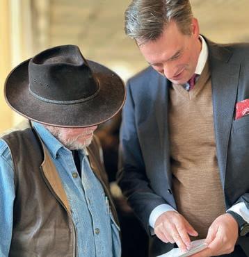 Timon Gremmels (Hessischer Minister für Wissenschaft und Forschung, Kunst und Kultur) mit Volker Beller vom Randfilm e. V.