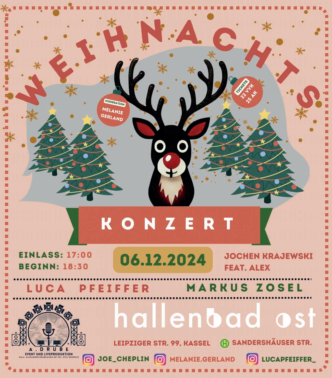 1. Kinderkonzert: Verzaubert!, Tabaluga oder die Reise zur Vernunft, Alles wie verhext, Die Drei von der Tankstelle, Weihnachten mit SEMINO ROSSI, Kasseler Ringvorlesung gegen Rechtsextremismus 24/25: „recht extrem! Landnahmen – Widerstände – Deutungskämpfe“, DIE ZEITREISE, VENUS, Die zertanzten Schuhe, Ulrich Tukur & Die Rhythmus Boys, BRASS BAND BERLIN: Christmas in Swing, Film in Concert, Der gestiefelte Kater, Mambo Kurt, Die himmlische Nacht der Tenöre, Giora Feidman: Revolution of Love.