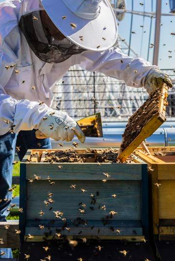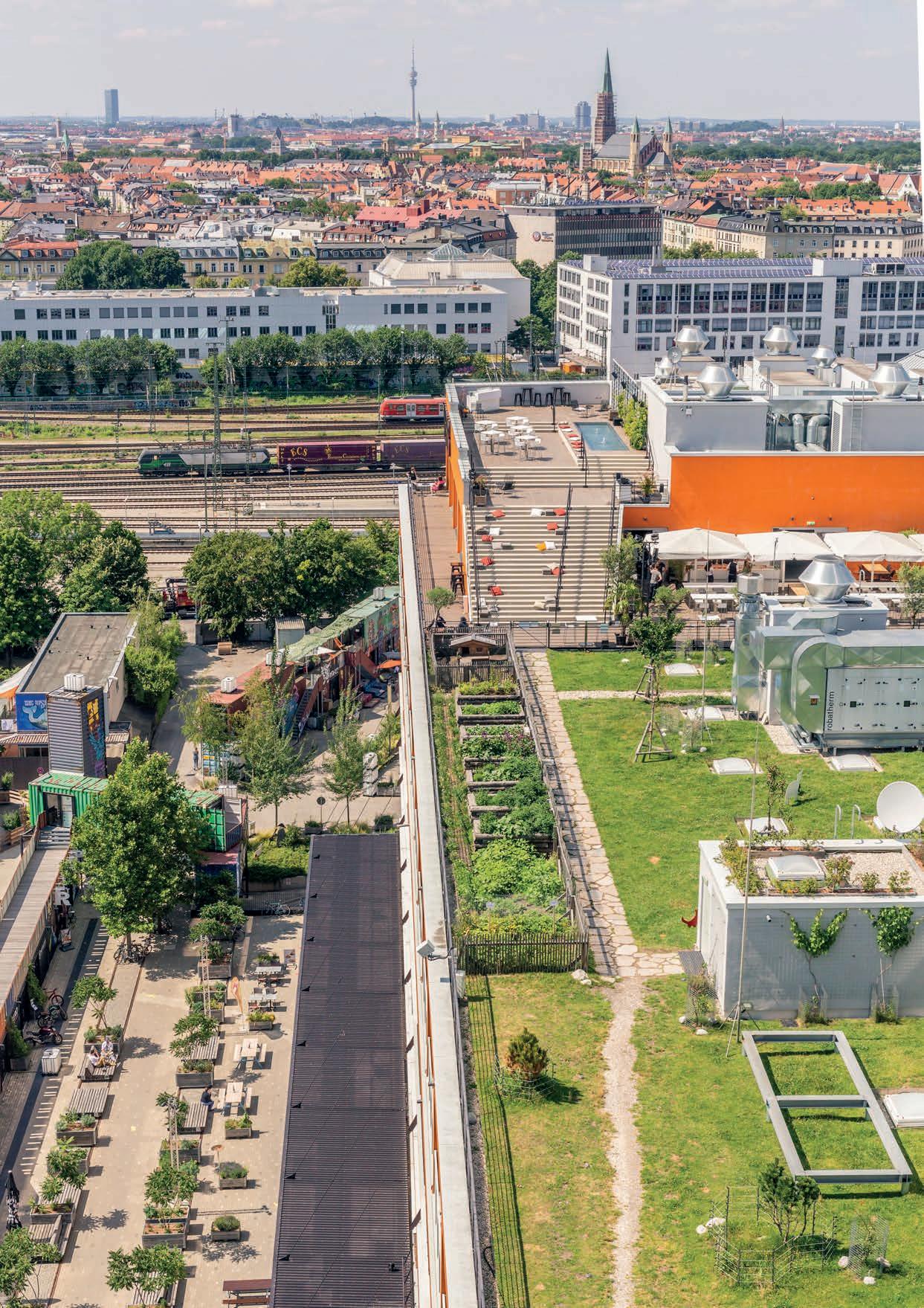 STADT-HOCHALM – Wenn von der Stadt- oder Hochalm gesprochen wird, ist das Dach des WERK3 gemeint. Eine rund 2.500 Quadratmeter grüne Oase liegt hier, versteckt auf dem dezent orangenen Leuchtturm des Viertels. Dort be ndet sich unsere Almschule mit Schafen, Hühnern und Bienen und allerlei Möglichkeiten, sich in Sachen Nachhaltigkeit, Natur, Landwirtschaft und Ernährung spielerisch und praktisch weiterzubilden.