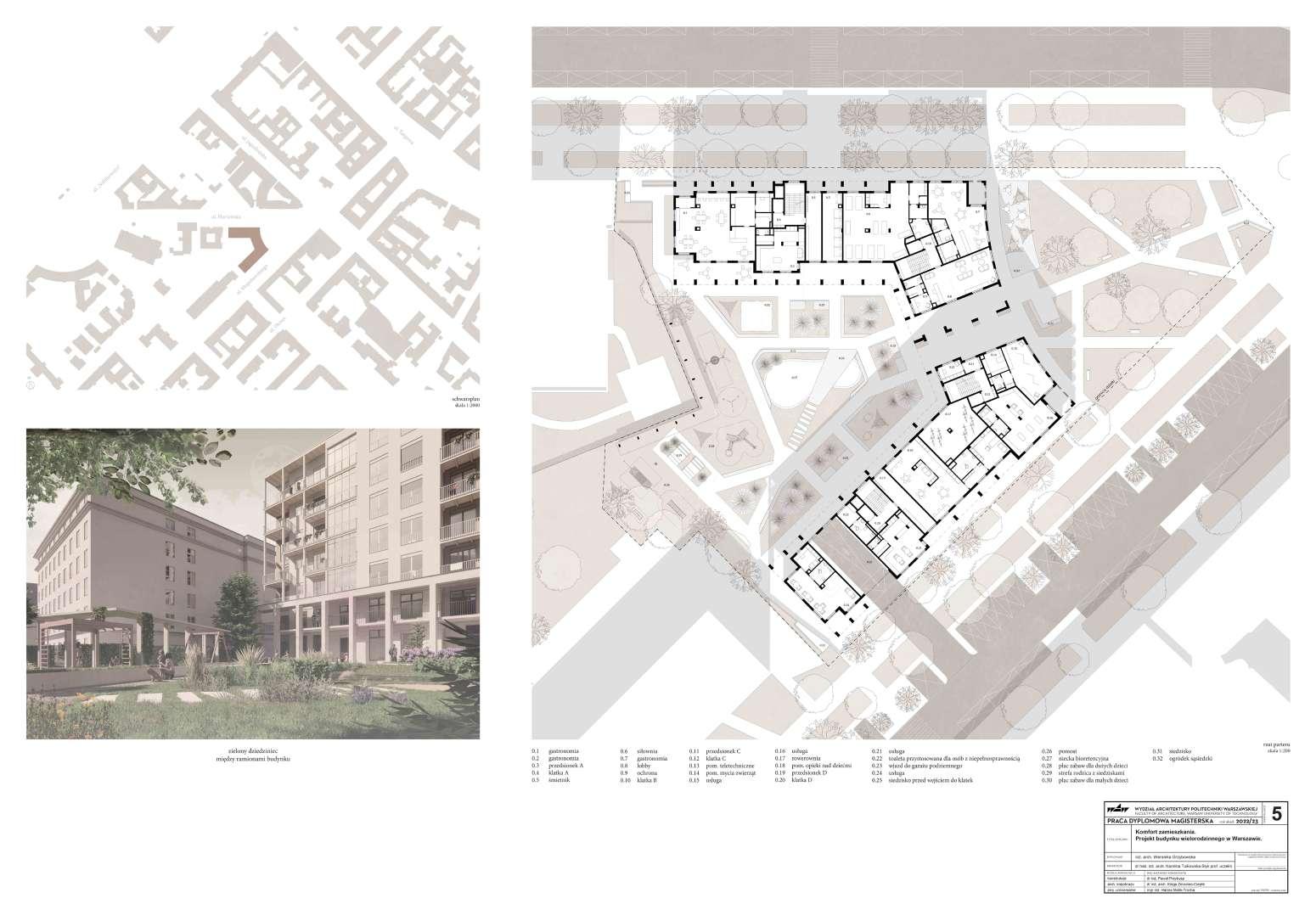 • dyplom mgr: „Komfort zamieszkania. Projekt budynku wielorodzinnego w Warszawie.”
