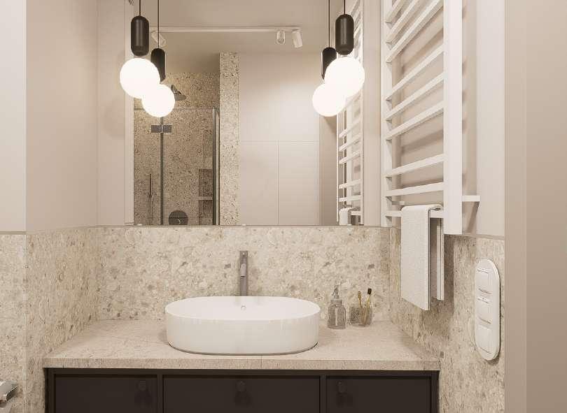 projekt projekt wnętrza łazienki lokalizacja Warszawa, ul. Zaruskiego 6 autor mgr inż. arch. Weronika Grzybowska