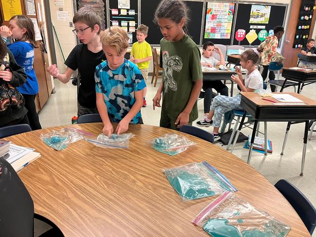 Students in Mrs Lieberg's class studying glaciers and deposition with some homemade glaciers