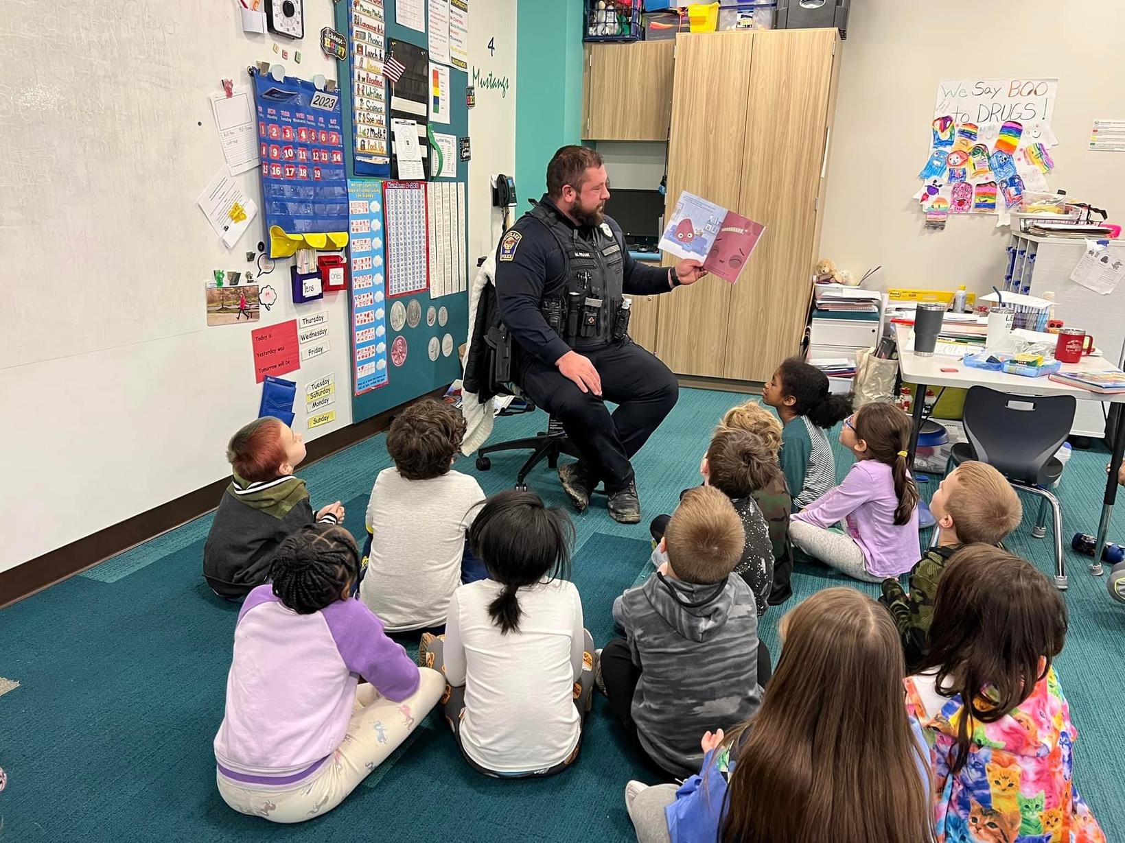 North students read to the Preschool students to kick off the Stocking and a Story program