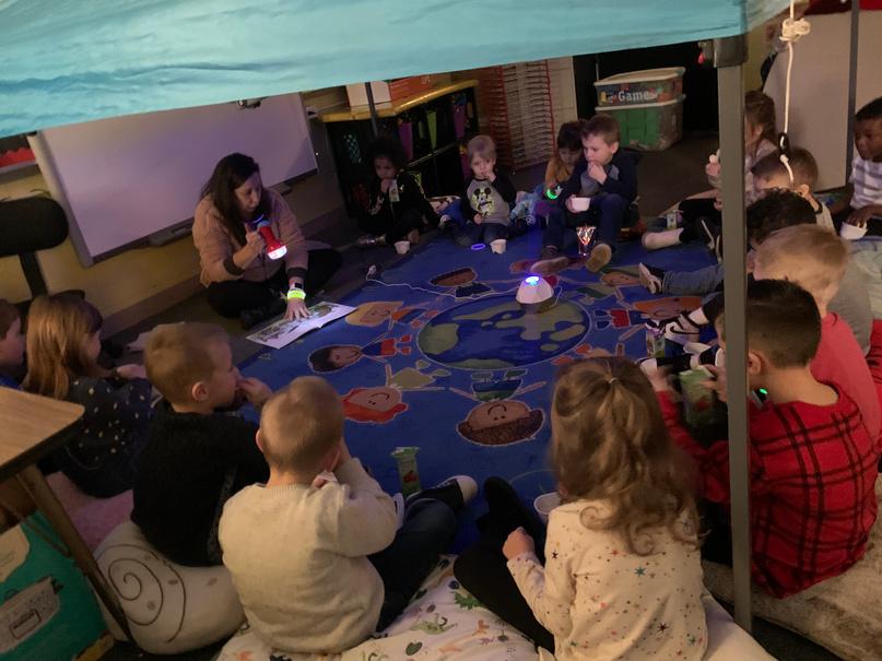 Students enjoy bedtime stories on Principal's Night to end book fair week