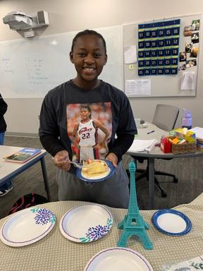 Students enjoy crêpes in French class to celebrate the February holiday “la Chandeleur”