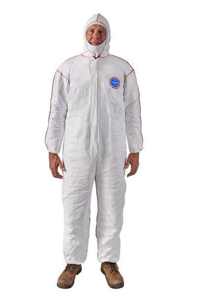 • Le tissu Tyvek® 400 à l’avant offre une barrière inhérente contre les particules fines et les éclaboussures légères de liquide