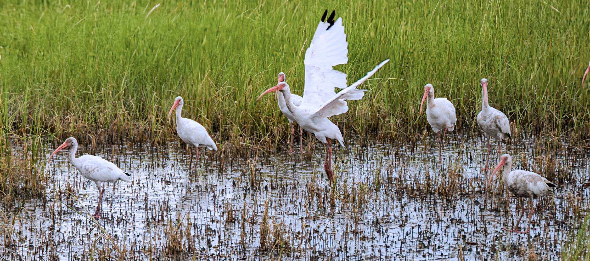 Wading birds you might see include various herons and egrets. Magnificent ospreys, hawks and eagles have also been observed, in addition to various songbirds. Some of the most celebrated sightings include: the bright pink roseate spoonbill, the redcapped pileated woodpecker, the wood stork with its striking black-edged wings and the anhinga (or snakebird) named for the snake-like movements of its long neck.