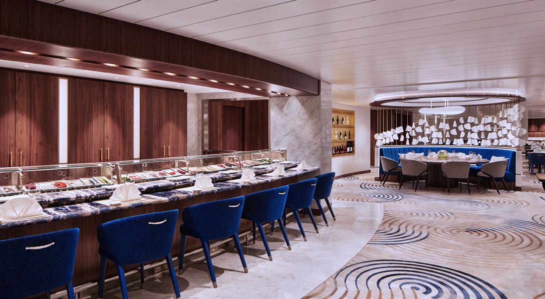 Osteria d’Ovidio, a collaboration with the Michelin-rated Alajmo brothers, prepares show-stopping Italian cuisine. At 28, Massimiliano, a.k.a. “Il Mozart dei fornelli” (the Mozart of the stoves), became the youngest chef to ever receive three Michelin stars! Raffaele is the CEO of the brothers’ restaurants: Le Calandre in Rubano and two others in Venice. Chef Alajmo assimilates both lightness and rich, savory flavors into his dishes, which could include: Burrata Ravioli with Seafood Sauce or Sea Bass with Potato Purée and Verbena Oil. There’s also the in-demand Rolled Pasta Filled with Braised Beef, Fig Molasses and Gorgonzola Cheese. Mangia! Reservations required | Included but limited to one visit per cruise