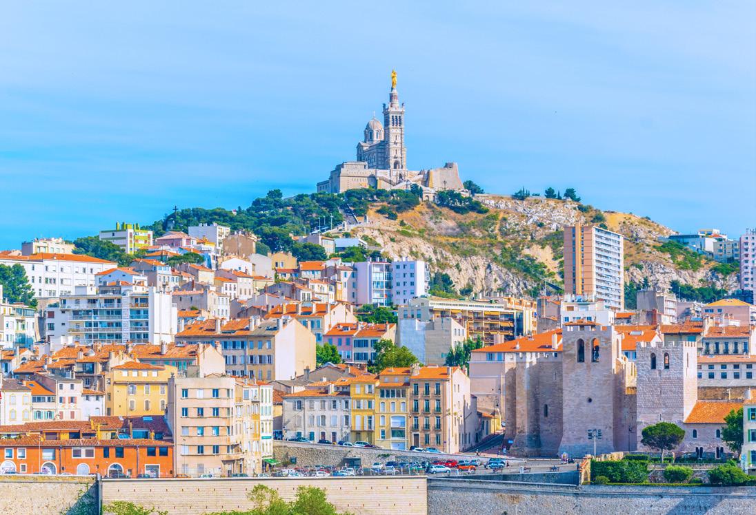 • Basilique Notre-Dame de la Garde (Our Lady of the Guard Basilica) — Take a bus or train to see this basilica perched high above it all. La Bonne Mère, Marseille’s golden guardian, stands nearly 32 feet tall atop the bell tower. Inside is a riot of red and white marble stripes, gold leaf and 13,000 square feet of mosaics! Outside, visitors are rewarded with tranquil views of the sprawling city.