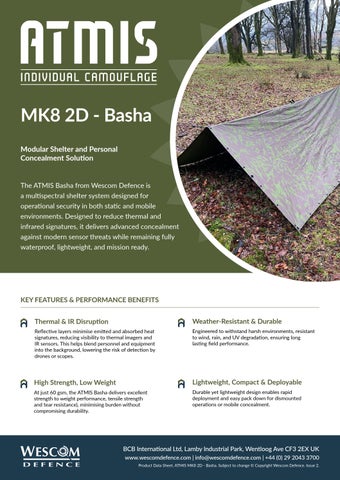 The ATMIS Basha from Wescom Defence is a multispectral shelter system designed for operational security in both static and mobile environments. Designed to reduce thermal and infrared signatures, it delivers advanced concealment against modern sensor threats while remaining fully waterproof, lightweight, and mission ready.