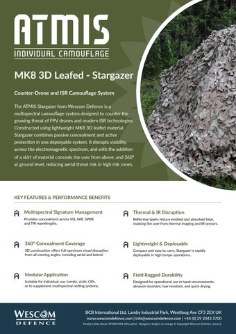 The ATMIS Stargazer from Wescom Defence is a multispectral camouflage system designed to counter the growing threat of FPV drones and modern ISR technologies.