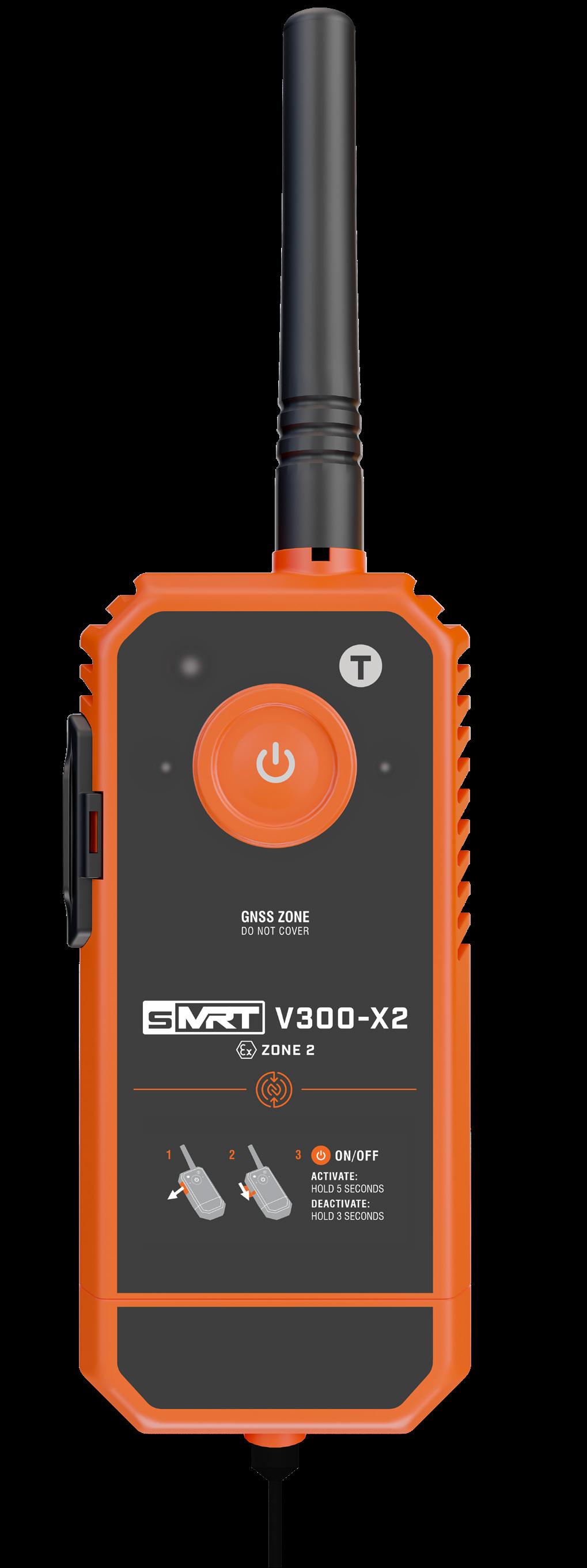 The sMRT V300-X2 is an ATEX / IECEx Zone 2 approved, commercial grade, man overboard (MOB) device incorporating AIS, VHF DSC, and 121.5MHz technologies. It features water activation technology, audible and visual indicators, and offers multiple fixing options for life jacket integration.