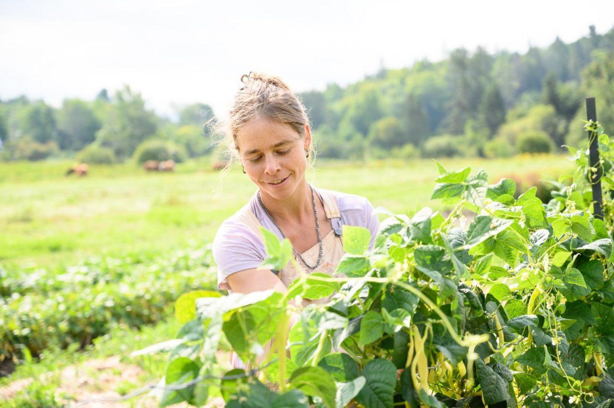 Catherine June Wallenburg, on-farm with her yellow bean crop, at Northern Seeds.“My hope is for this wheat to not only have a good story, not only have a captive audience or clientele, but that it might become one of the assets that provides resiliency to our farm in the face of climate change.”