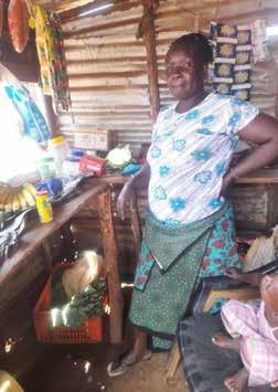 Esther, a member of the VIP in Nairobi, Kenya. She started her grocery business with a loan of £3 in early 2022, which she repaid on time and increased the next time in order to diversify her stock. She is already making a profit of £3-£9 a week and saving £1.50 in every group meeting.