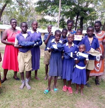 Pictured below are several members of the group distributing school materials and uniforms to the 16 children identified by the Child Rights Club. The children are all between the ages of 8 and 12, most of whom have been orphaned and are now living with elderly grandparents. This support has meant that all of them are now back in school full-time.