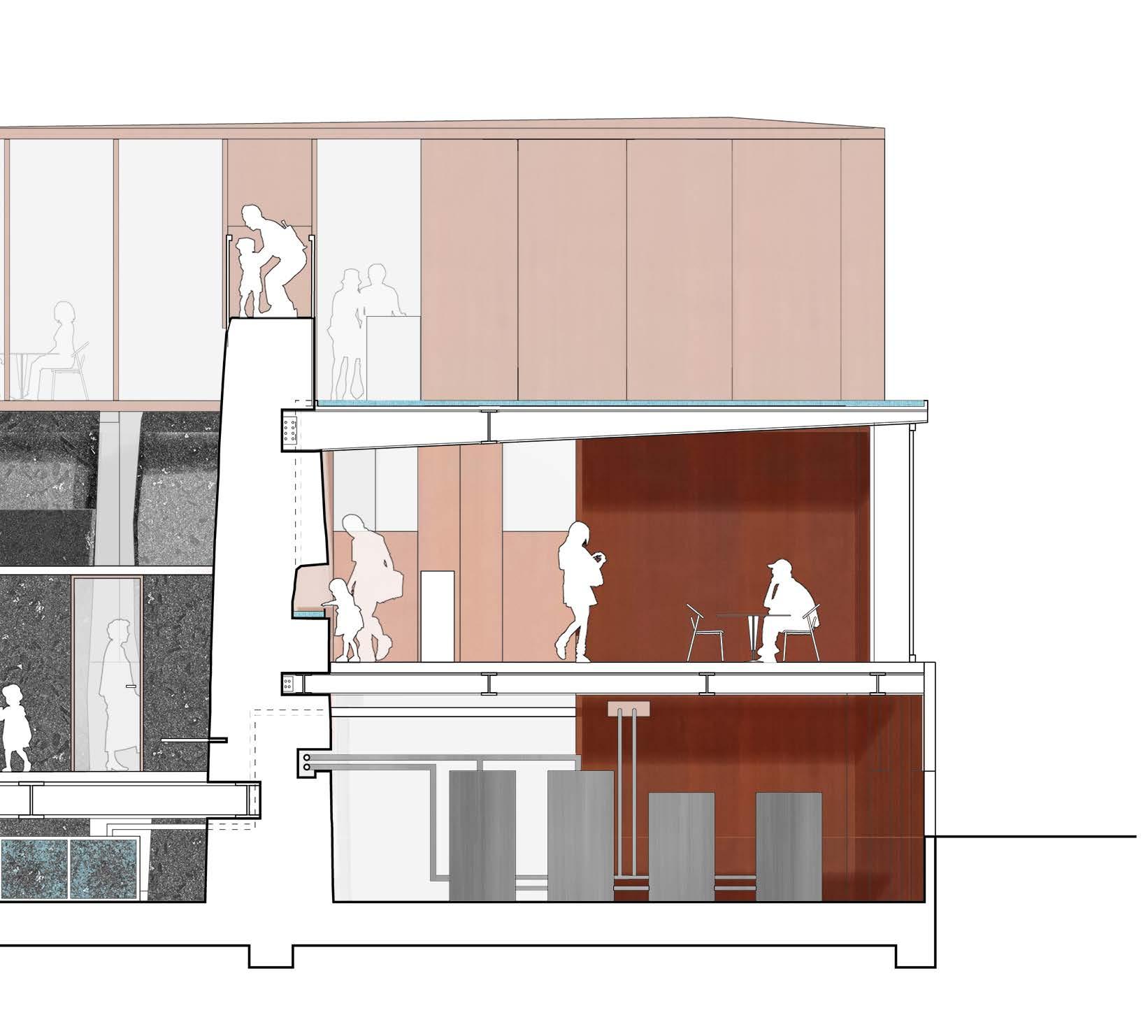 Architectural education breaks down conventional ideas and expands the way students think until they see the world through a different lens - a kaleidoscopic lens that makes it impossible to ignore the multitude of assemblies involved in creating architecture. The studio’s primary purpose is to provide a gathering space, where students learn by doing, collaborating, observing, and being observed. Rather than being an enclosed room, the studio must become the movement of the building, performing as a spread of active spaces for gathering and the constant repositioning of the architectural lens.