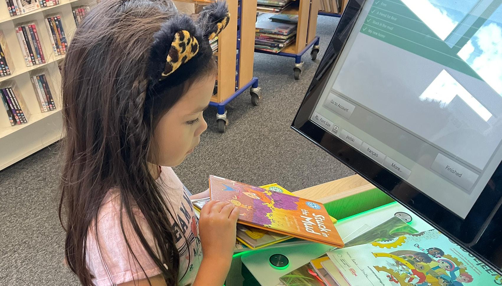 Meet Ruby, the golden retriever with a golden heart, pictured on the cover bringing joy to a little girl during a Rhyme Time session at Newbury Library.