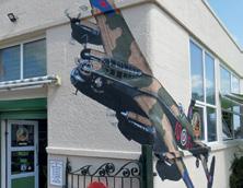 The scene of a Lancaster Bomber flying over the Lincolnshire countryside during WWII was painted on the wooden wall of the original