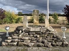 This memorial was dedicated at a ceremony held on 16 July 1994. Unusually, it commemorates the 50th anniversary of the deaths of the crew of two RAF bombers –Stirling EH940 from 1661 HCU RAF Winthorpe; and Lancaster LM29, from 103 Sqn RAF Elsham Wolds; both aircraft crashed near to the village in the summer of 1944.