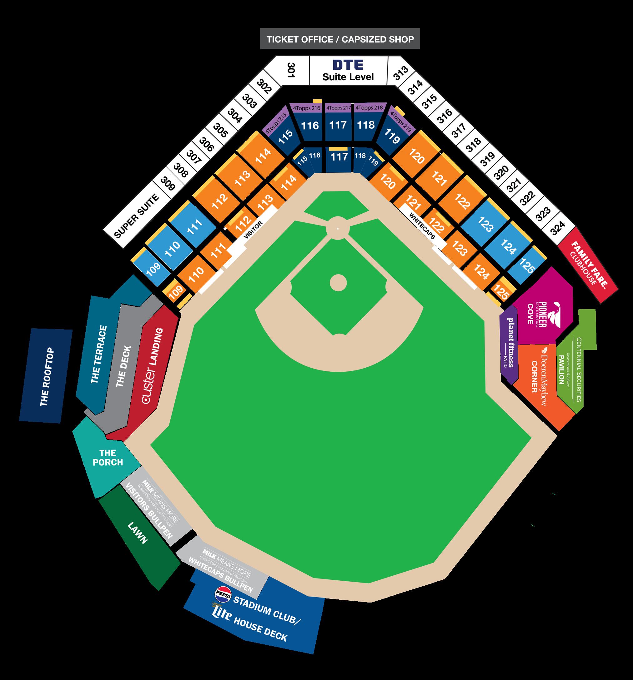 MiABLE BARRIER-FREE SEATING AND PARKING: The Whitecaps provide wheelchair accessible and companion seating in the 4Topps, premium box, box, and reserved seating areas. All of our group hospitality areas, including the DTE Energy Suite Level, feature easy wheelchair accessibility. Elevators are located on either side of the ballpark to take fans to the box seat level. LMCU Ballpark has handicapped reserved parking spaces in all lots. Proper identification is required to use these spaces.