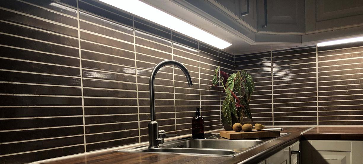 Dimbar bänkarmatur med flyttbar strömställare. Fästs med medföljande skruv upptill. På ovansidan av armaturen finns också dubbelhäftande tejp för att underlätta montaget. Flex-varianten har ställbar färgtemperatur. Lämplig för överskåpsbelysning i kök, tvättstugor etc.