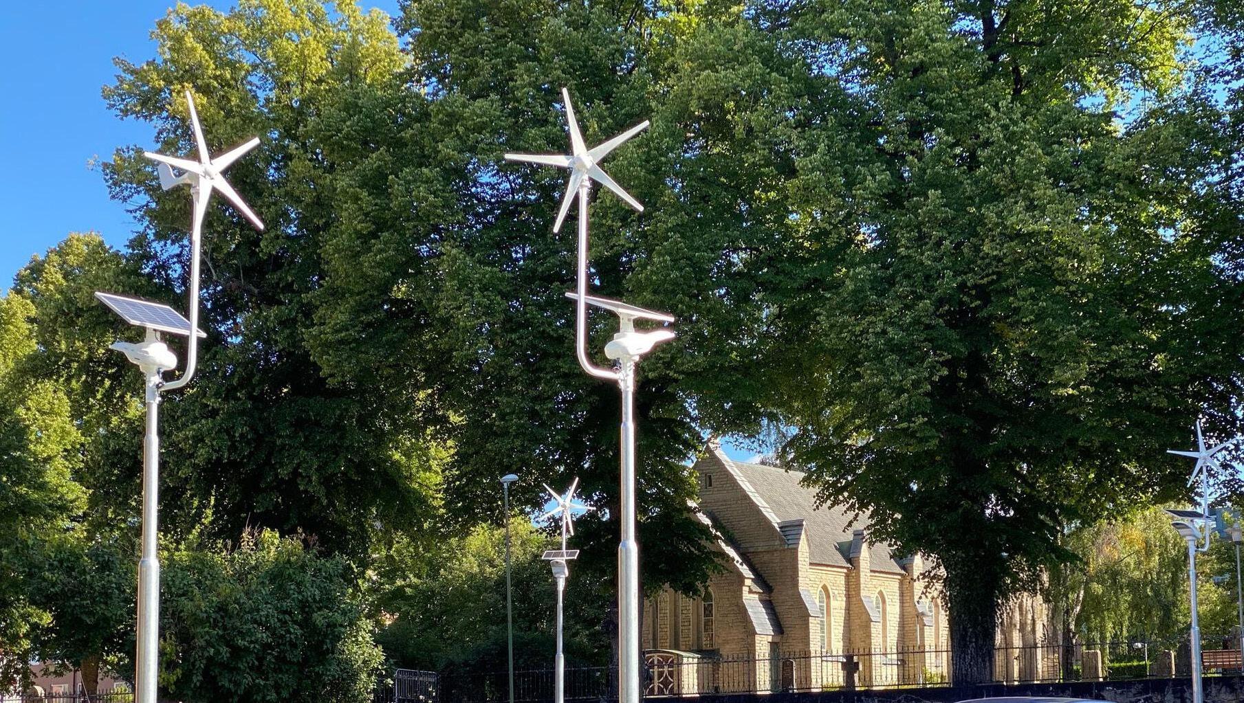 Stolparmatur som drivs med hjälp av batterier som laddas av solpanel och/eller vindgenerator. Armaturen tänder upp vid mörker och har ett grundljus på 30% fram till det att mikrovågssensorn reagerar på rörelse. Då ökar ljusnivån till 100%. Full laddning varar ca 12tim på 100%.